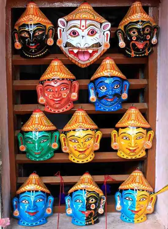 ରାମଲୀଳା, କୃଷ୍ଣଲୀଳା, ଦେଶିଆନାଟରେ ରାକ୍ଷସ ଚରିତ୍ରଗୁଡ଼ିକୁ ବାଦଦେଲେ, ଅନ୍ୟାନ୍ୟ ଚରିତ୍ରୋପଯୋଗୀ ମୁଖାଗୁଡ଼ିକ, ହାଲୁକା ଓ ସୌନ୍ଦର୍ଯ୍ୟରେ ପରିପୂର୍ଣ୍ଣ ।