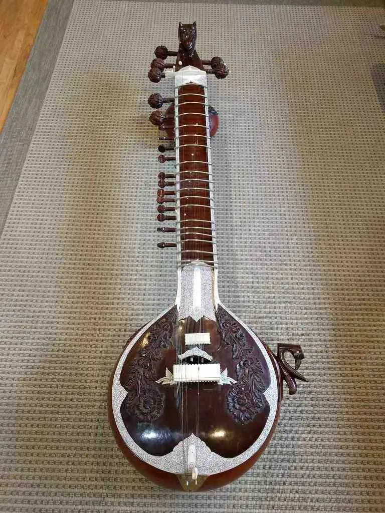Despite the Surbahar, being constructed and played similarly to the Sitar, is recognized as a separate instrument owing to its bigger size and deeper sound. It has a longer neck, thicker strings, and a wider fretboard than the Sitar. Additionally, the Surbahar is tuned lower than the Sitar, providing a range of up to three octaves. As a result of its unique tonal characteristics and deeper range, the Surbahar is mainly used to play the alap section in Indian classical music. In the past, when the Sitar had limited melodic capabilities, the alap was played on the Surbahar while the Sitar was reserved for playing the drut gats. The Surbahar is played with a similar technique to the Sitar, but due to its larger size and longer neck, it requires a different playing posture and approach. The musician must sit cross-legged with the instrument placed on the ground, tilted slightly towards the player. The strings are plucked with a wire plectrum or mizrab, and the frets are pressed with the fingers to create the desired notes and embellishments. The Surbahar’s unique design also allows for the use of sympathetic strings, which resonate with the main strings to create a rich, layered sound.
